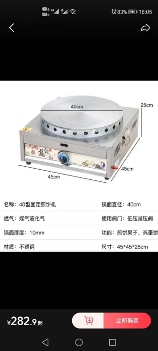 出售商用煎饼炉一台,全新未使用的,原价390多,价格可议...